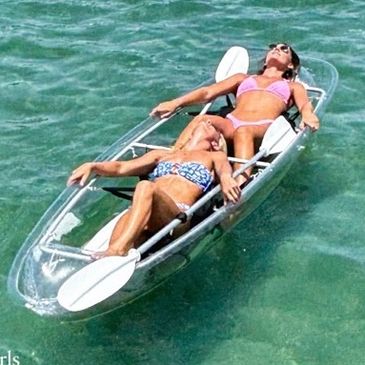 2 New Paddle Boards, A Brand New Mission REEF 85 Inflatable Water Mat, A Mission Reef Hex 101 Raft, and a brand new clear kayak.